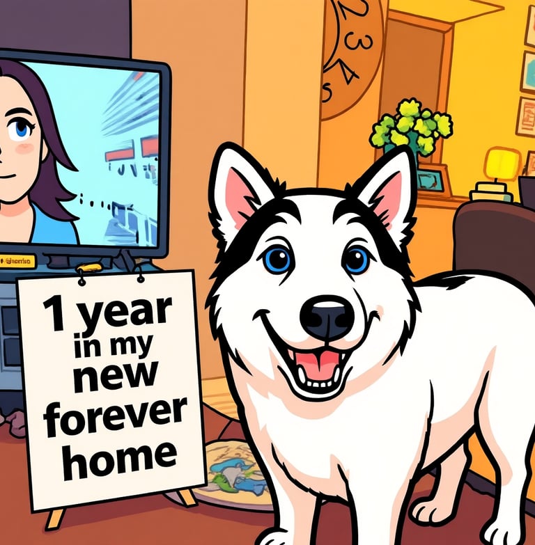 One year ago today 23/1/26, Samson the rescue Husky found his new forever home ❤️